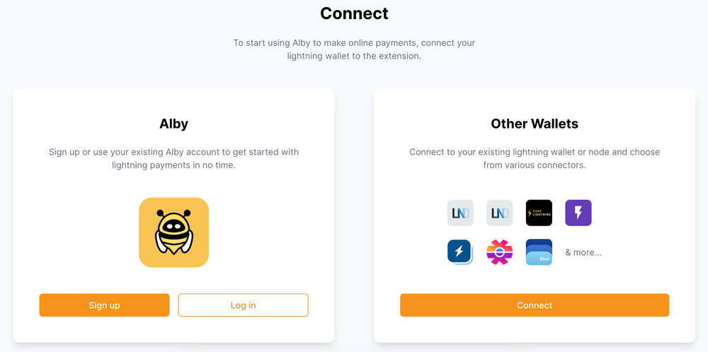 L'estensione Alby è il tuo portafoglio digitale per il browser. Utilizzala per gestire i tuoi pagamenti lightning online e per gestire le tue identità (Nostr). A seconda del tuo browser, controlla l'Add-on store di Mozilla Firefox o il web store di Chrome. Per il momento Alby funziona al meglio sui browser desktop, ma viene già utilizzato sui dispositivi mobili con Kiwi Browser per Android o Orion per iOS - è in programma il supporto ufficiale per i dispositivi mobili.