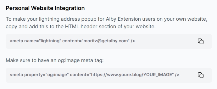 Do you have an own domain and would like to use this domain as your lightning address? That's possible with Alby: Use your own domain as lightning address