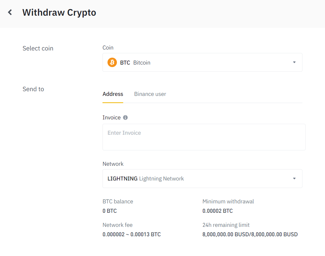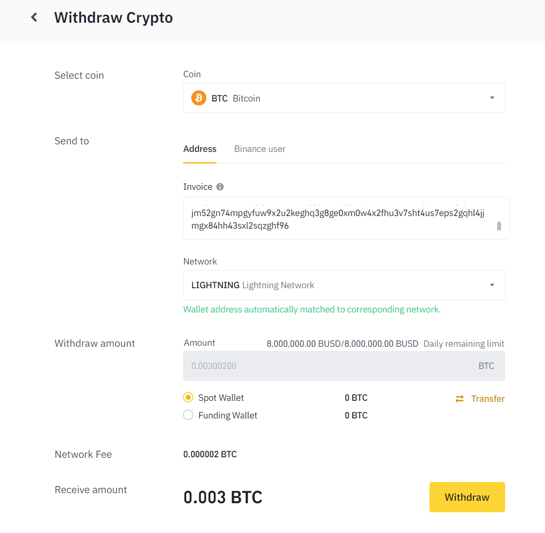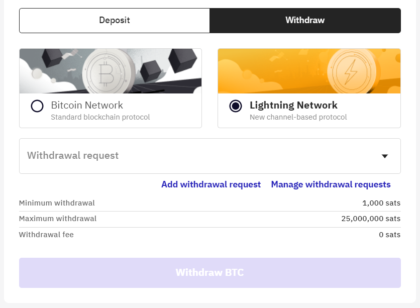 Select Lightning Network as the withdrawal method