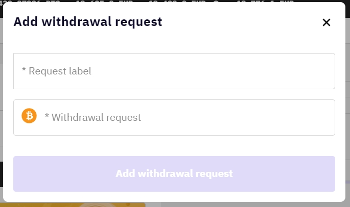 Add a label in the 'Request label' field. It helps you to find the withdrawal request again later on.
