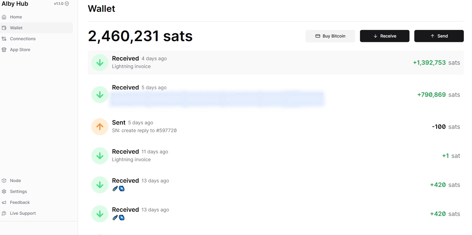Alby offers the perfect solution for your Hub with an integrated lightning node, all while ensuring that only you have access to your Alby Hub. This is your very own self-custody wallet, safeguarding your bitcoin and allowing you to send and receive bitcoin seamlessly. Enjoy the ultimate convenience with Alby.⚡