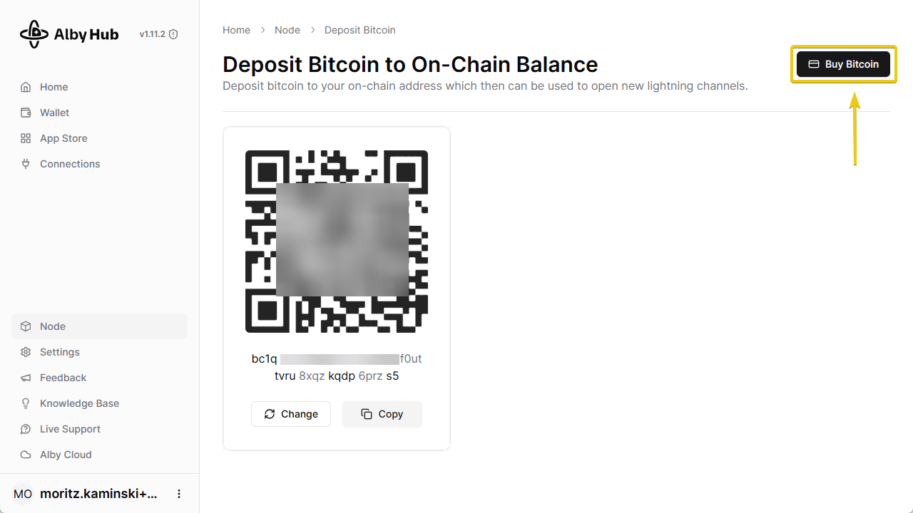 Navigate to the "Node", then "Advanced" then "Buy Bitcoin"