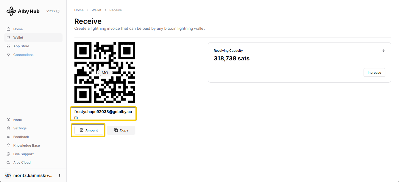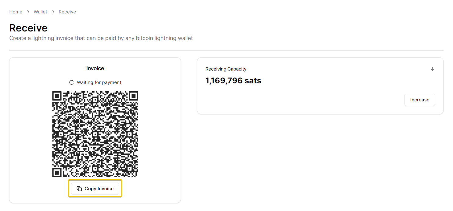 2.a) Copy your lightning address and pass it on to the sender or ...