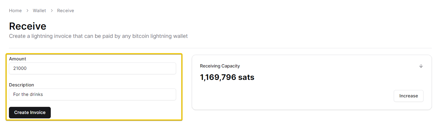 1. Navigate to "Wallet" and click on "Receive"