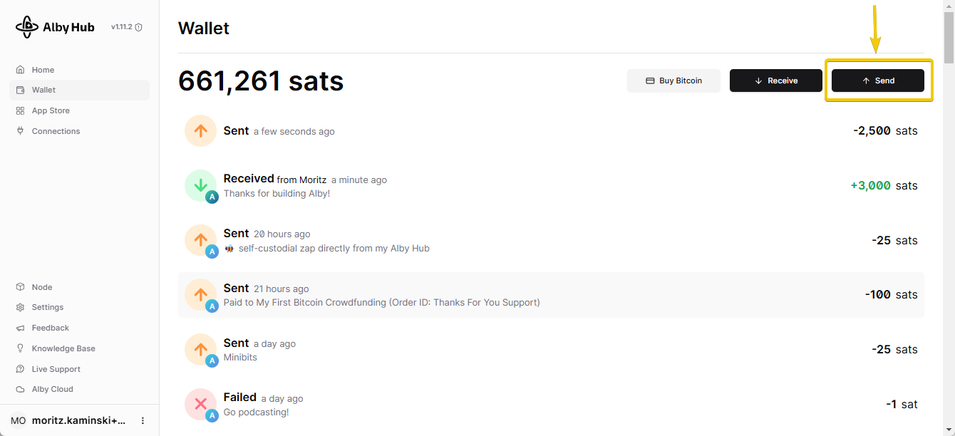 <figure><img src="https://content.gitbook.com/content/WIUBf3ZZaBGu2ee6Y8lU/blobs/Po4GWfMmTrfB2TyPdEIj/4B1dD96E6F.png" alt=""><figcaption><p>Alby Hub wallet</p></figcaption></figure>