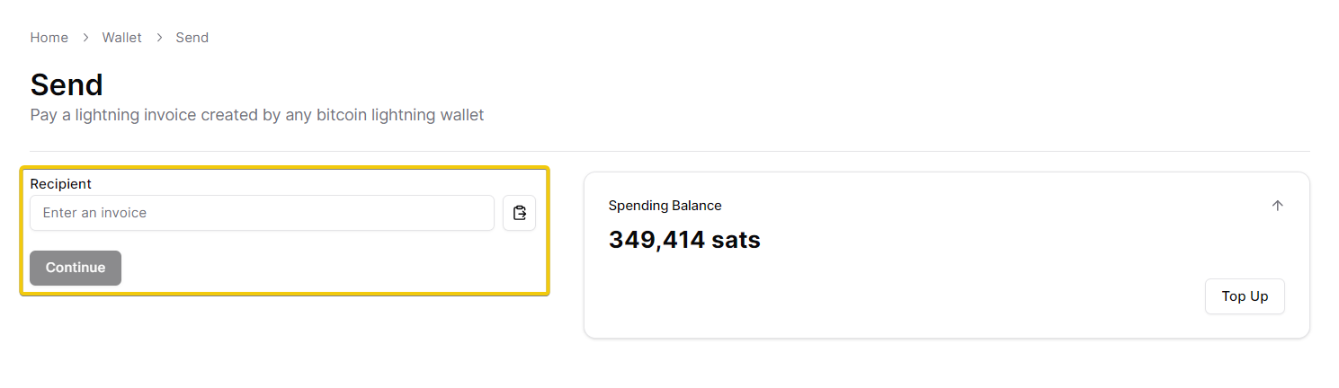 ### 2. Enter a lightning invoice of the recipient and click "Continue"