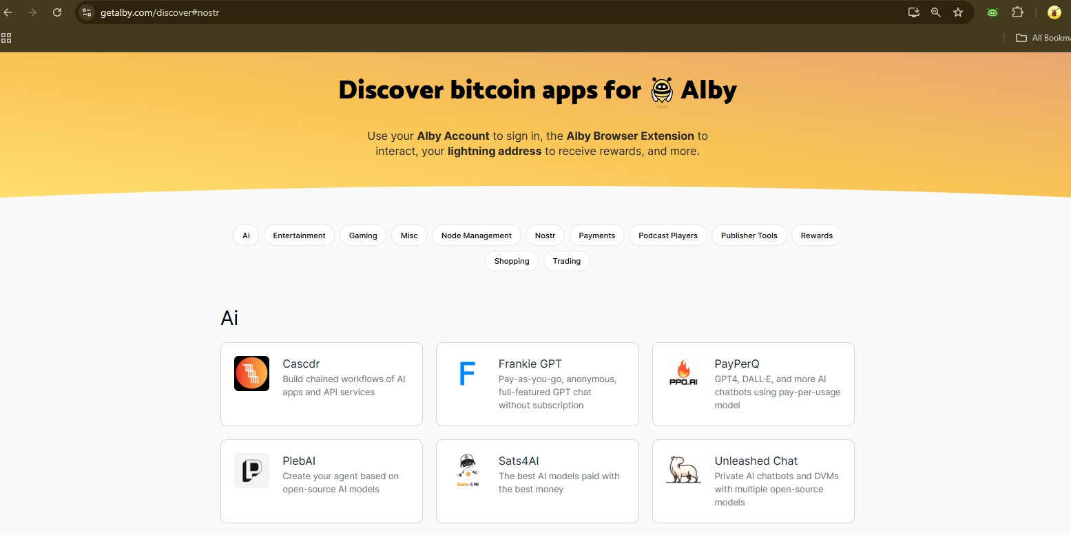 Step 3: Scroll down and discover new Lightning & Nostr web apps