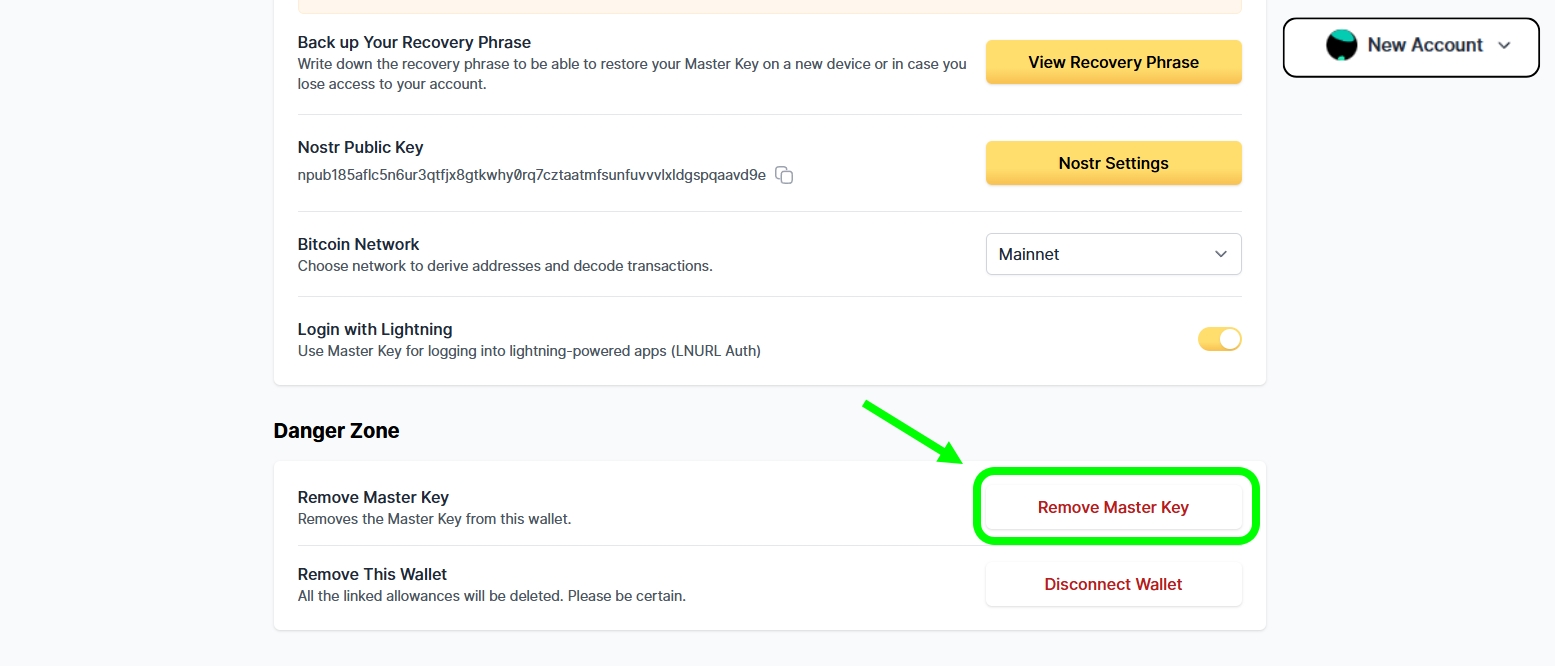 Step 2. Log into the New account. Erase its current Master Keys
