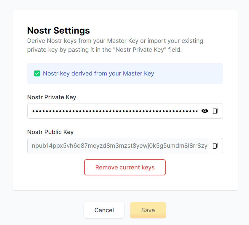 View and edit your Nostr keys