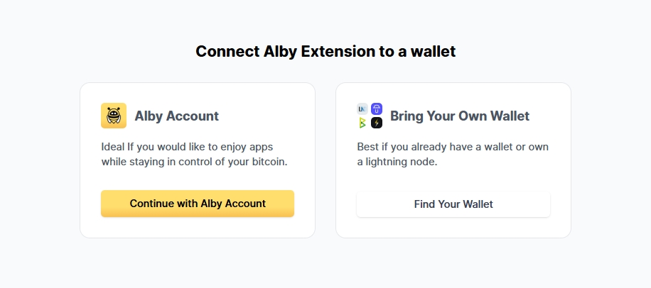 Step 2: Click "Connect with Alby" or "Connect" other wallets