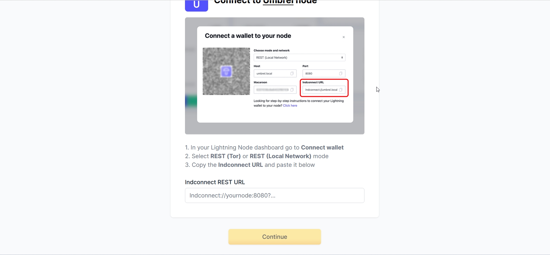 Step 5: Connecting your umbrel node: You will need the lndconnect URL