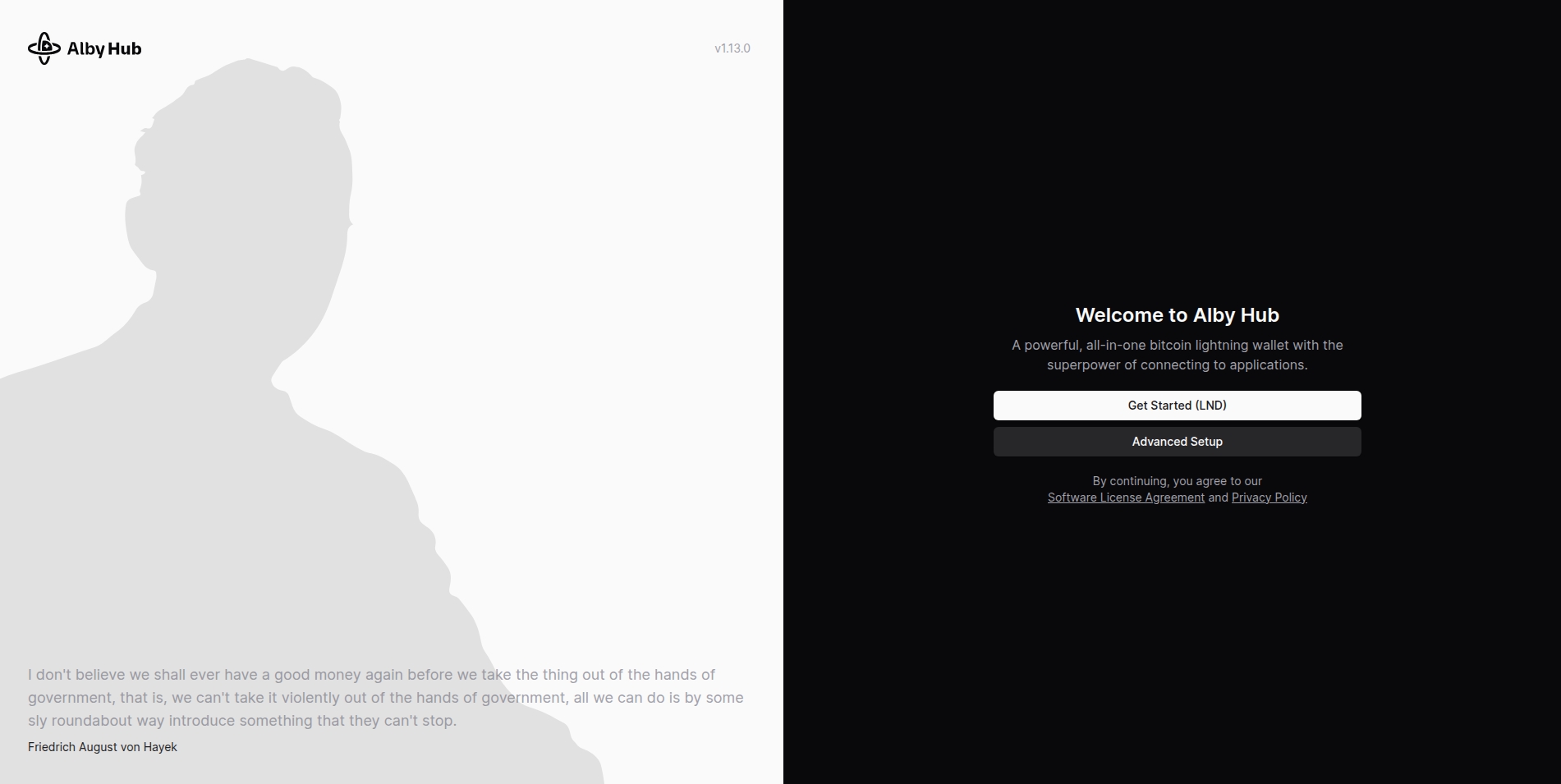 When opening Alby Hub for the first time, select the default installation "Get Started (LND)". Next, log in with your Alby web account, you will have to click on a link to "OAuth" and the link will between your Alby web Account and Alby Hub will be established. Afterward, you’ll need to open a channel with the Alby Hub. For instructions, please refer to this guide: